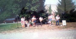 Da hatte ich zufällig genau die Richtigen getroffen: Karin Lochem erinnerte sich sofort an die Skiffler! „Na klar, ihr habt auf unserer 1000-Jahr-Feier 1995 gespielt!“ Und sie war es, die uns Skiffler damals liebevoll mit Getränken und Essbarem versorgte! Sogleich wurde ich überredet, wieder mit auf das Fest zu kommen und alte Bilder anzuschauen (die allerdings erst einmal gesucht werden mussten). Nach dem etwa vier Alben herbeigeschafft und durchwühlt waren (die Feste über die vielen Jahre waren darin für die Nachwelt gesichert) stießen wir auf ein paar Fotos mit Addi´s Skiffle Company. Leider hatte ich meinen Fotoapparat nicht dabei, so habe ich die unten dargestellten Fotos mit meinem Handy gemacht. Nicht die beste Qualität, aber als Erinnerung eine gute Sache, oder?